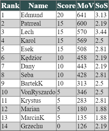 Gratuluję zwycięzcom, zwłaszcza Edmundowi, który po wygraną szedł jak burza :)