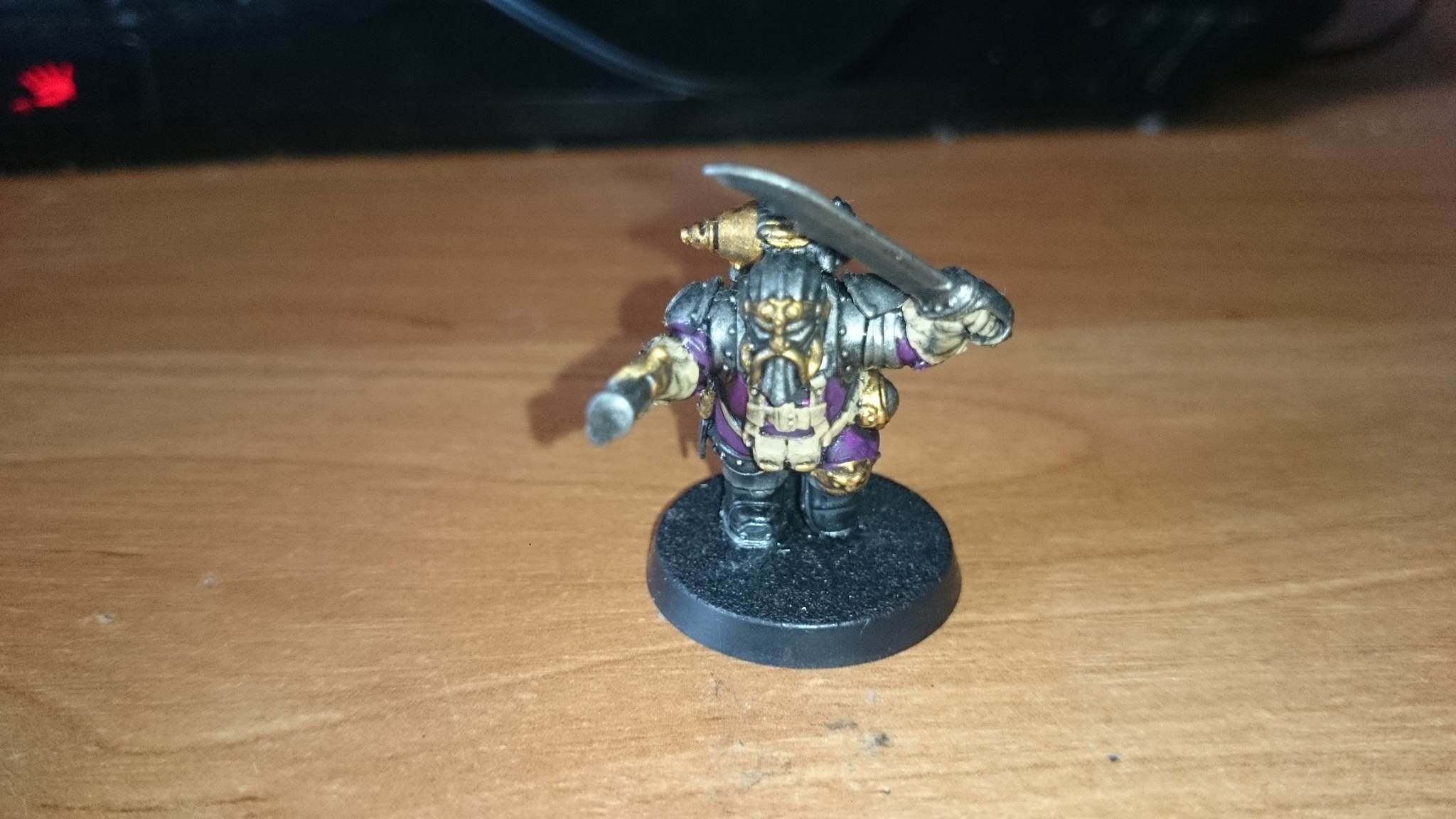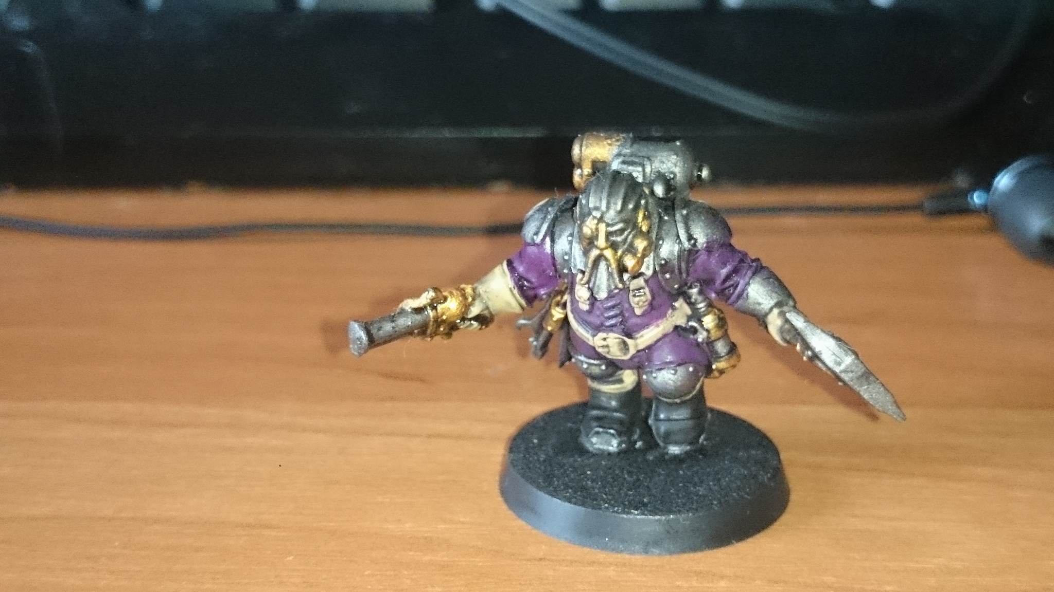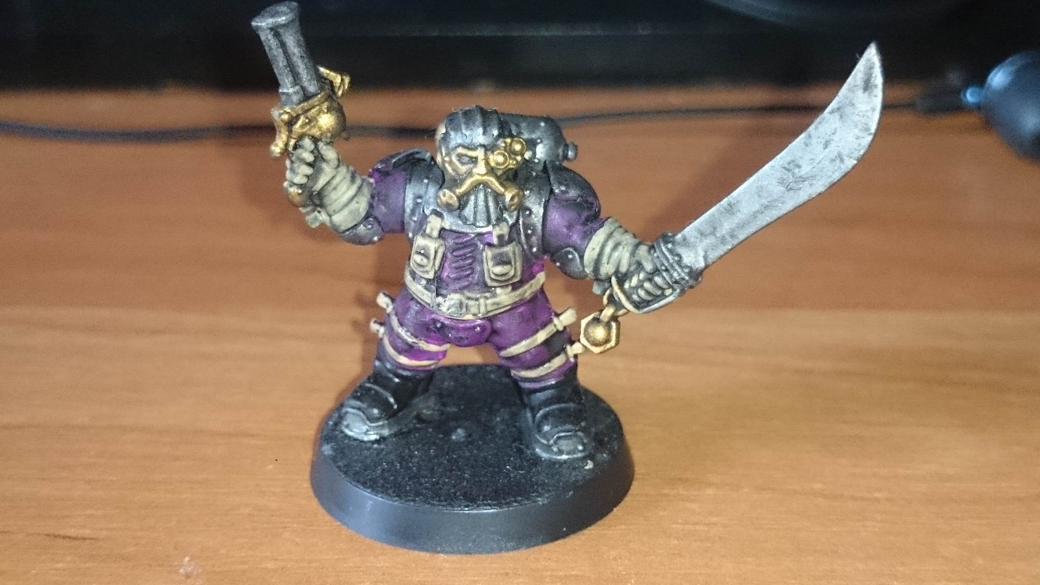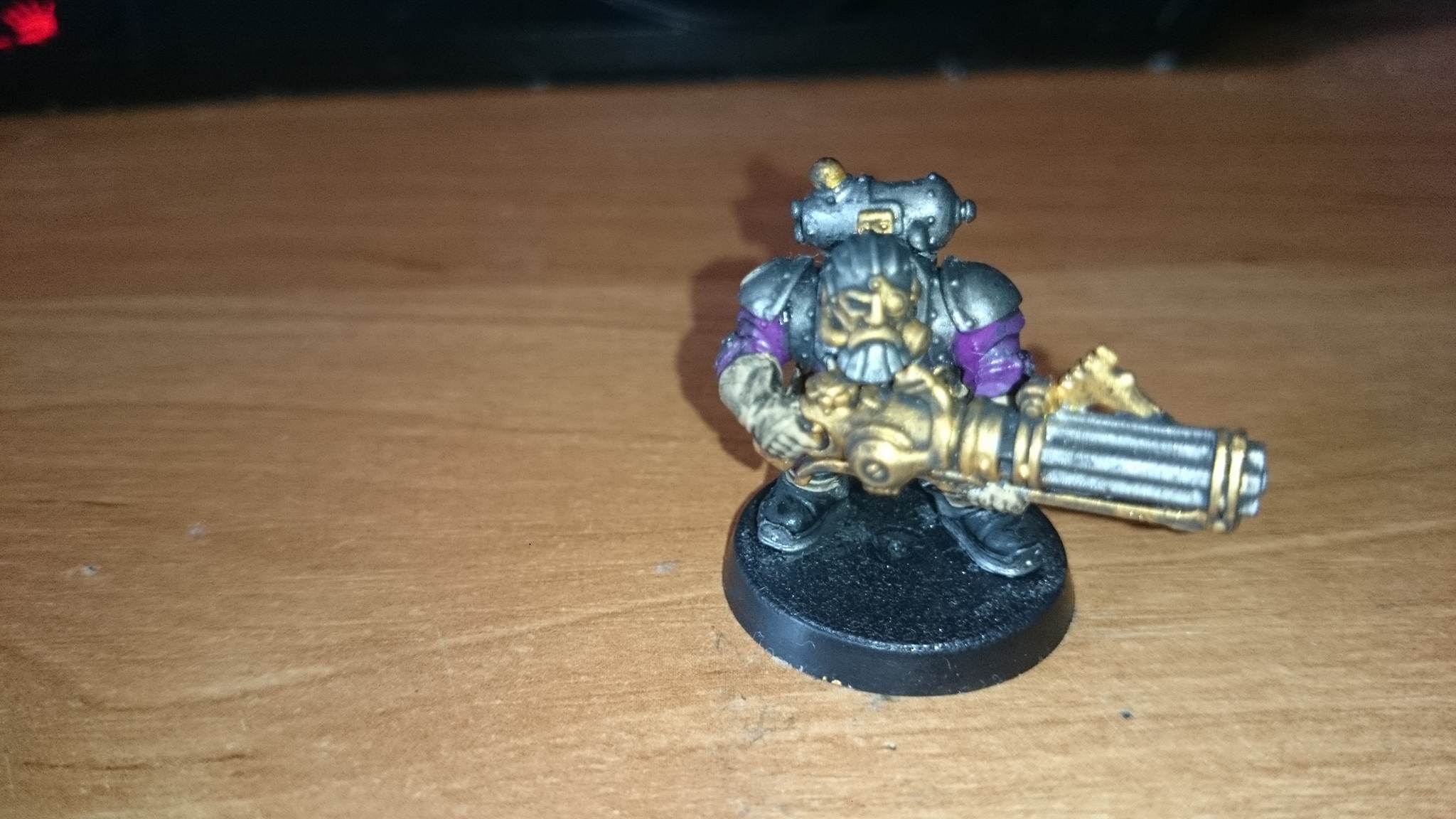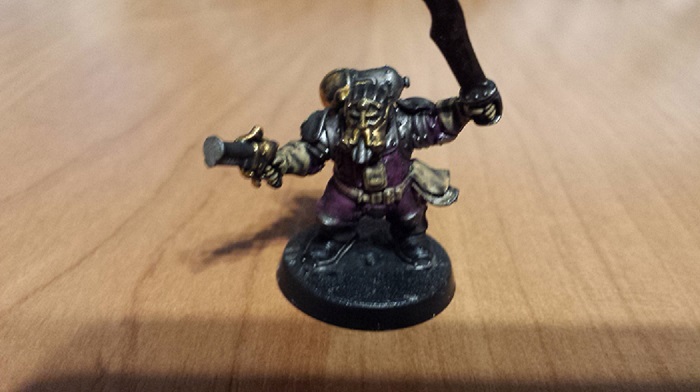 Nieźle, kolory dobre, nadlewek czy linii podziału formy jakoś nie widzę, jedna uwaga, namaluj czarną kropeczkę w środku lufy pistoletu, żeby wydawała się pusta. Możesz też skalpelkiem nawiercić i wtedy zamalować.