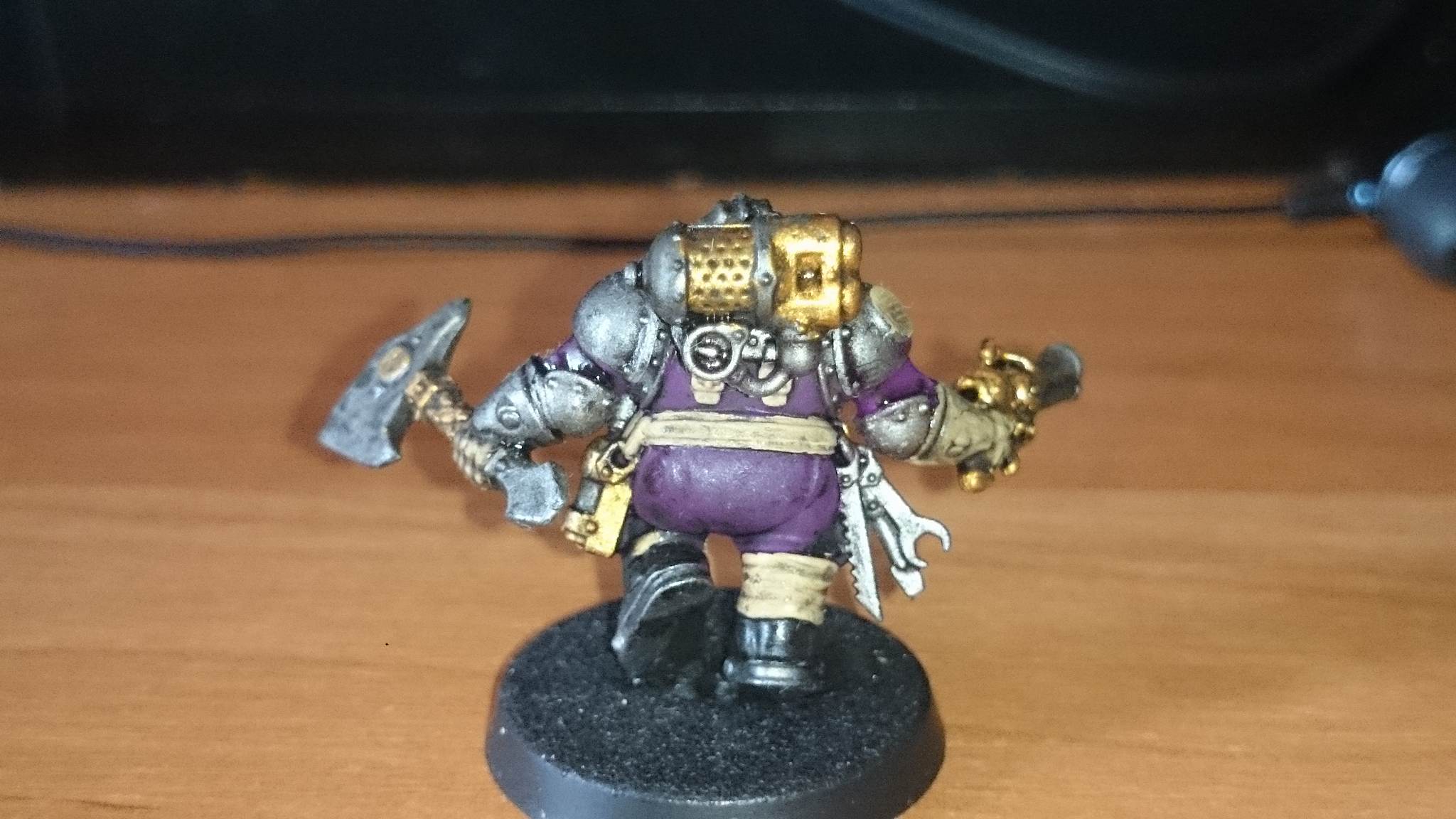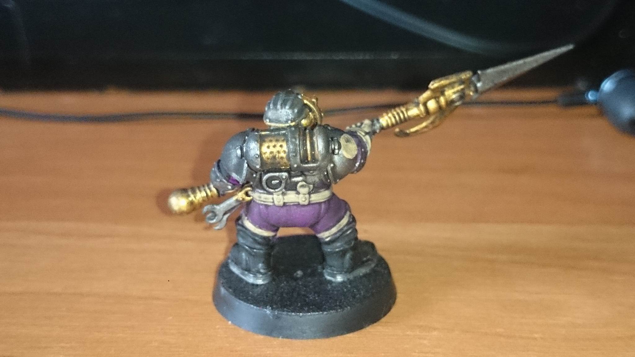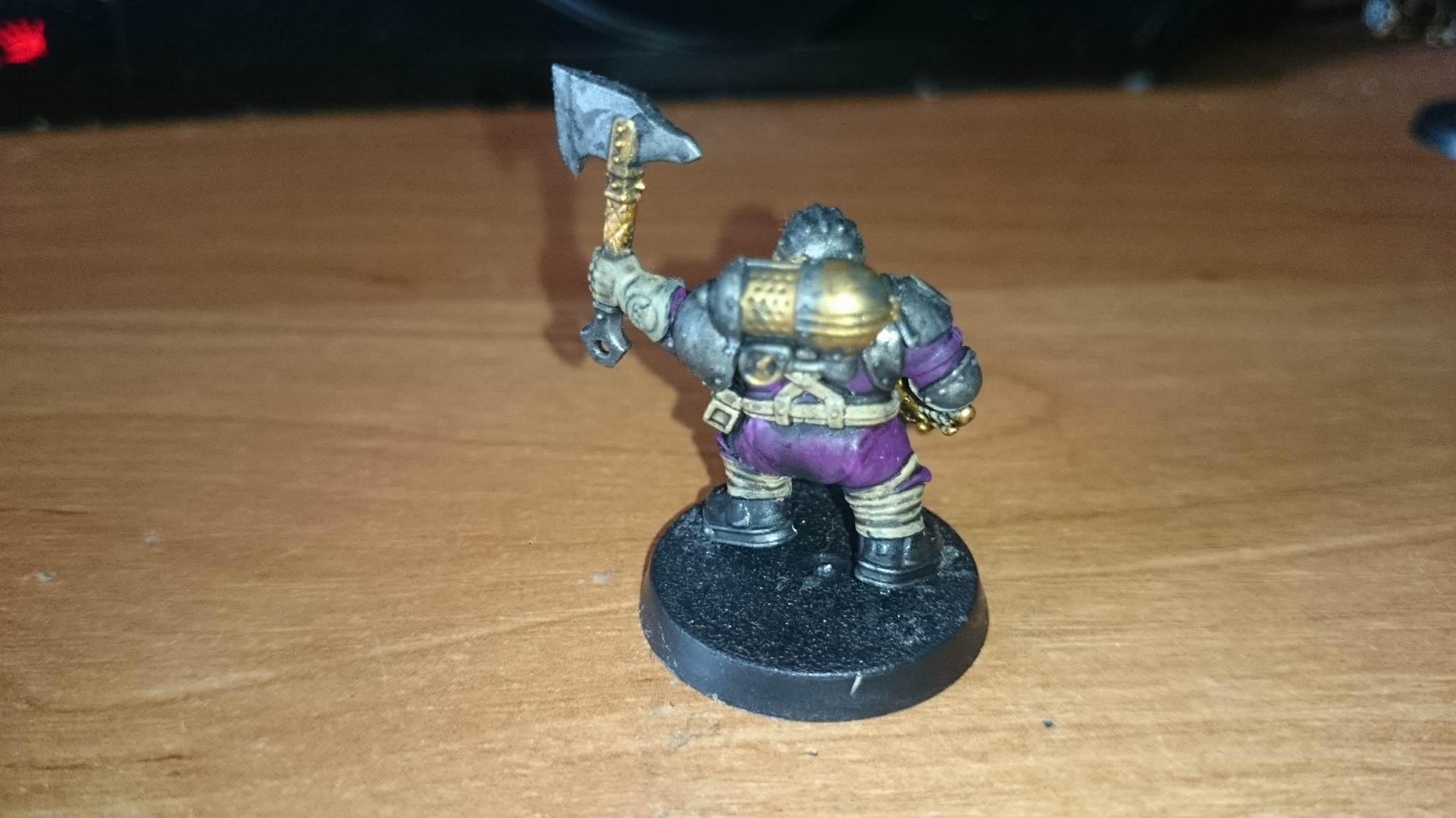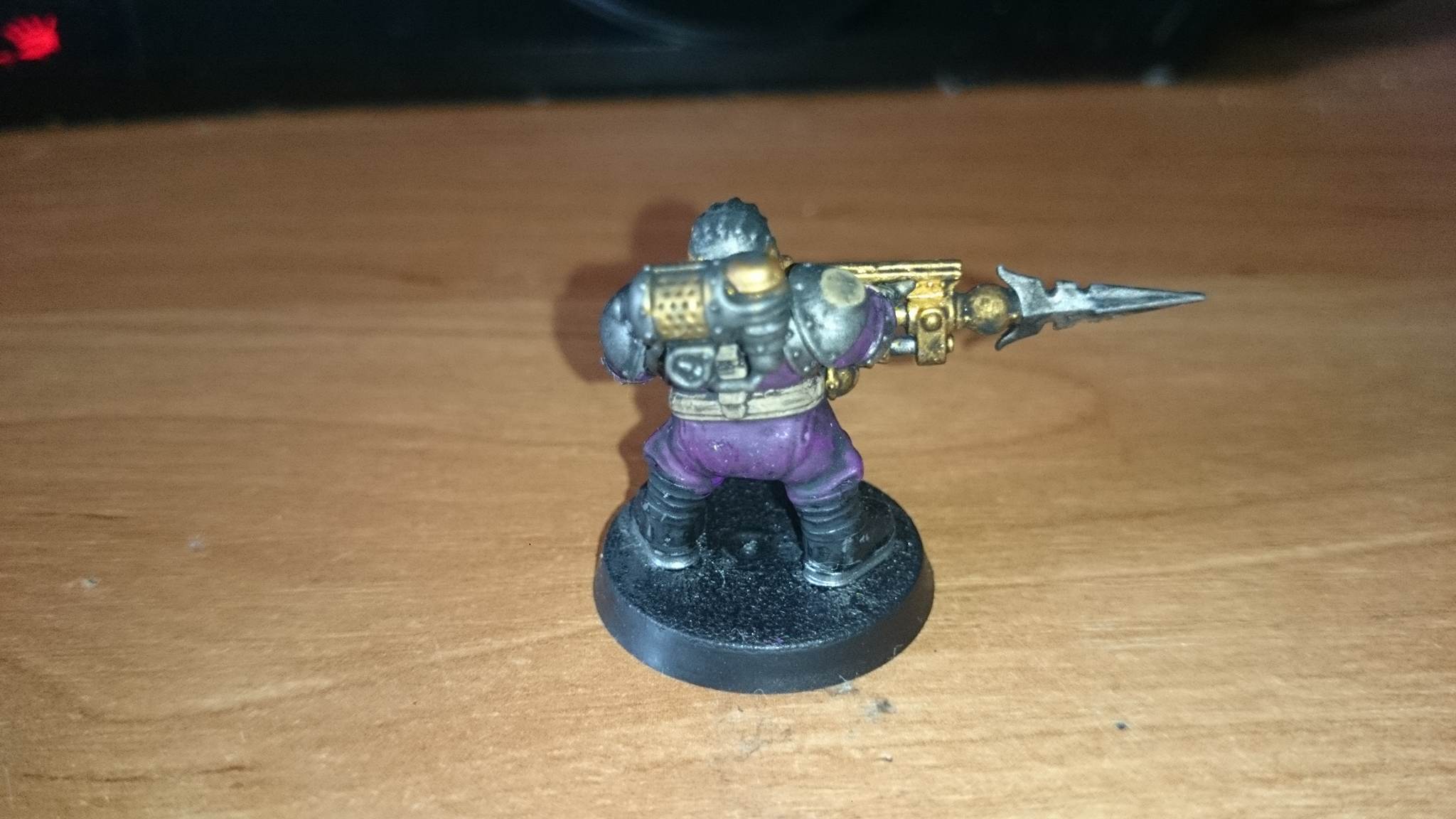 Nieźle, kolory dobre, nadlewek czy linii podziału formy jakoś nie widzę, jedna uwaga, namaluj czarną kropeczkę w środku lufy pistoletu, żeby wydawała się pusta. Możesz też skalpelkiem nawiercić i wtedy zamalować.