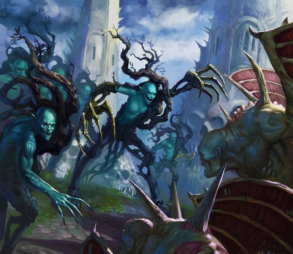 Chwilę po dotarciu posiłków Sylvaneth, na horyzoncie zauważono smukłe postacie które poruszały się w kierunku Świętego Lasu.