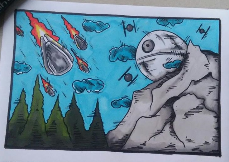 Rok temu Michaelos wystąpił z pomysłem dość fajnym, bo tam miał być komisarz z tyłu, z przodu pierścień z kostek i hasło, możnaby dopisać tam jakieś "olsztyński klub gier bitewnych", teraz jakieś, jak mam być szczery, nijakie te projekty, gwiazda śmierci jest co prawda rozpoznawalna na ulicy, ale drop pody już nie bardzo, jakość grafiki też taka, jakby rzec, komiks dowcipny w gazecie pana urbana czy coś w tym guście, nie znam się. Kostki w głowie już lepsze, ale wydaje mi się, że jak nie pomysł Michaelosa, to możnaby jeszcze coś do tej głowy wrzucić, bo same kostki to nie tylko bitewniaki- no, k20 to już wybitnie nie games workshop xd raczej erpegi.